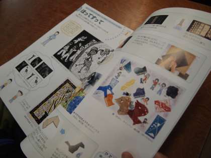 4年1組は版画の時間。以前描いた動物などの絵に「自分」を描き足していき下絵にするそうです。