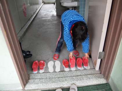 トイレのスリッパ。そろえてもそろえても散らかっていることがあります。「そろえてくれたらうれしいなぁ」と声をかけたら快く直してくれました。ありがとう!