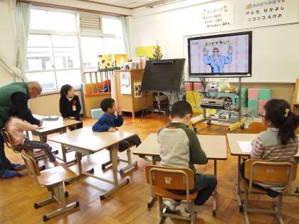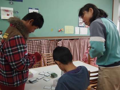 みんながそれぞれの課題に取り組んでいました。6年生の交流で学んだ百人一首にもチャレンジしています。
