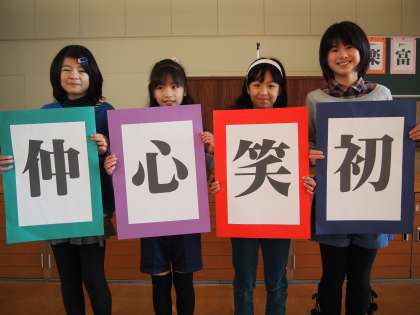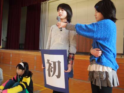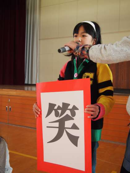 嵐山東「今年の漢字」朝会 2
