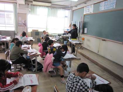 「ろうかはどのように歩きますか。」と聞かれ,「静かに」と即答する子ども達。