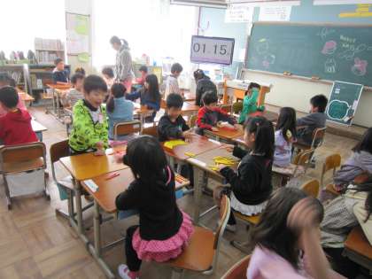 子ども達は,数え棒をじゃんけんに勝ってとろうと真剣にじゃんけんをしていました。