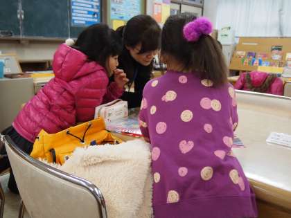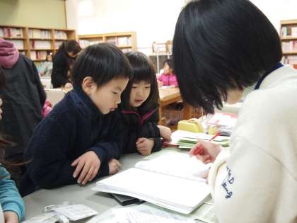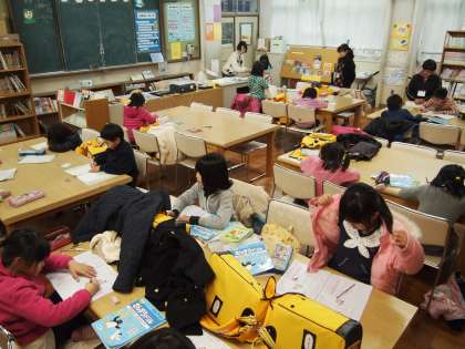 放課後まなび教室の様子です。「おっ,計算速いんやなぁ〜」「ぼく得意やねん」…。みんな授業が終わったあとなので教室全体にゆったりした空気が流れていました。