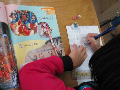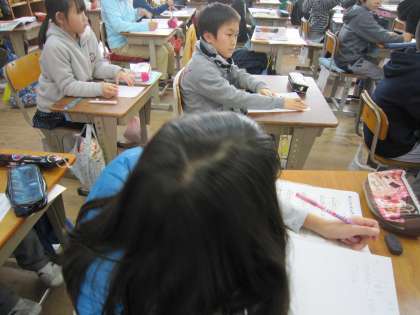4年1組では,「世界のいろいろな楽器やリズム楽しもう」という学習をしていました。サンバの曲を聴き,感じたことを言葉で表していました。