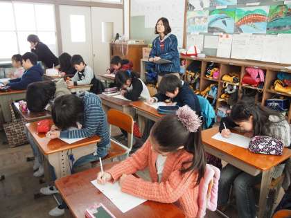 5年生2組で31日の研究発表会の事前授業を行いました。「くずれ落ちた段ボール」という読み物を読み,「親切」について考えました。