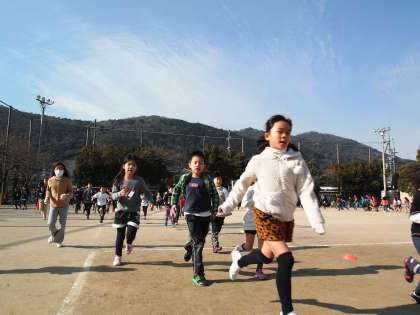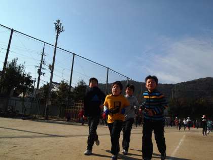 低学年は1周.中学年は2周,高学年は3週です。(1周が1km)