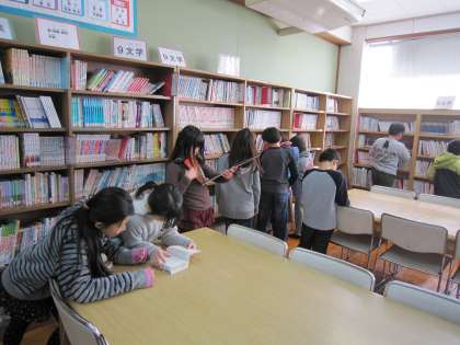 4年1組の子ども達は,図書室で読みたい本を選び借りていました。