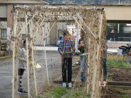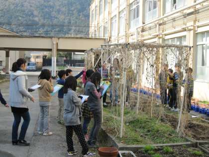 今はもう枯れているツルレイシですが,枯れている様子を見ることも大切な学習です。