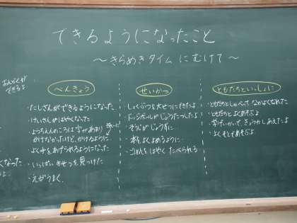 2月10日(月)はいよいよあおぞら学級と1年生の出番です。1年生の教室をのぞいたら「できるようになったこと」というアンケートのようなものを書いていました。入学以来10か月になりますが,勉強でも遊びでも友だちの事でもいろんなことができるようになってきたようです。そんな話をしてくれるようですよ。お楽しみに。