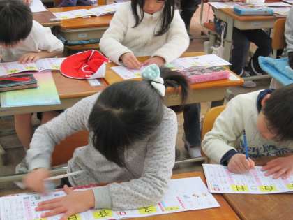 1年生は,漢字の練習をドリルや漢字練習帳を使ってしています。