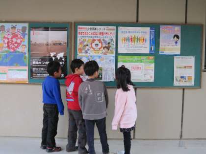 中間休み,体育館横にある掲示板の前に,子ども達が集まっていました。