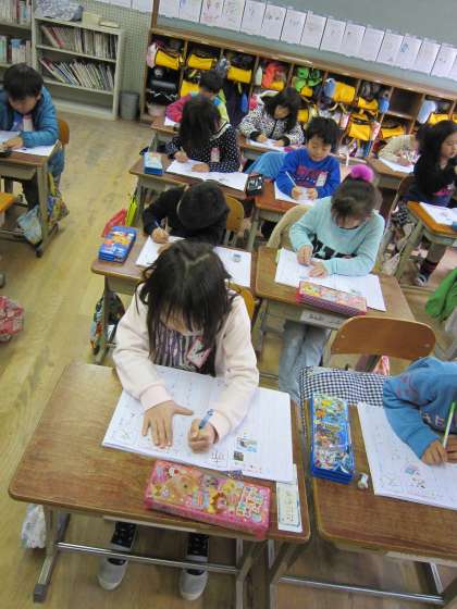 教室で「きれいに書いてね。」と声をかけると,「はい。」「きれいに書いているよ。」と返事が返ってきました。きれいに書こうという思いが感じられ,うれしくなりました。