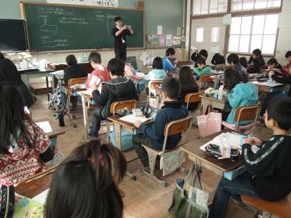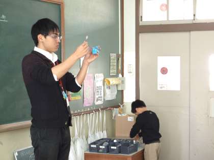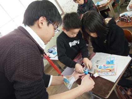 3年2組は理科の実験。電気を通すものとそうでないもの調べをやっていました。