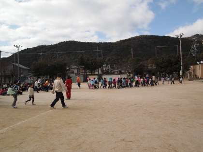 教頭の「訓練,訓練。ただ今自身が発生しました。…」というアナウンスが入りました。運動場に注目していましたら,運動場の真中に集まるのは比較的早かったのですが,残念ながら多くの子どもたちからはいつまでもおしゃべりが聞こえていました。