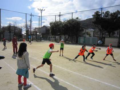 3年生は,体育でエンドボールをしています。