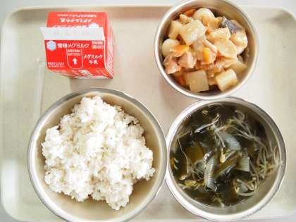 今日の給食は「プリプリ中華炒め」です。本校では人気一番のおかずです,と言うか多分,全市的に見ても大人気のおかずだと思います。給食室から流れてくるにんにくのおいしそうな香りがたまらなく食欲をそそります。どの教室からも「やった〜!」という声が聞こえてくるようです。