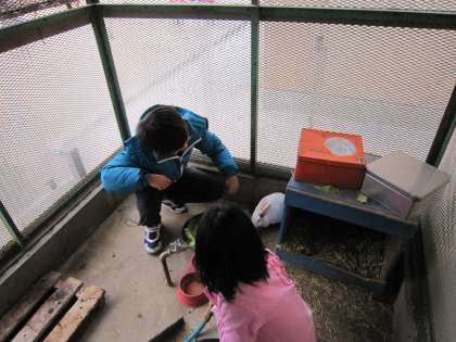 飼育委員の子どもたちは,毎日うさぎ小屋の中のそうじやえさやりをしてくれています。