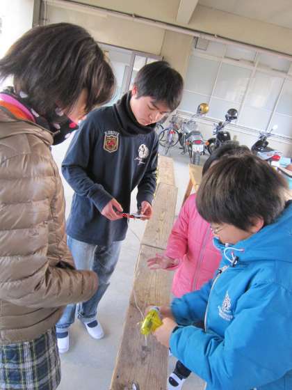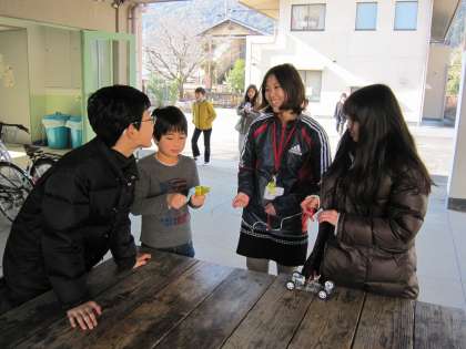 自分たちが作り出した電気で,車が動くのを楽しんでいました。