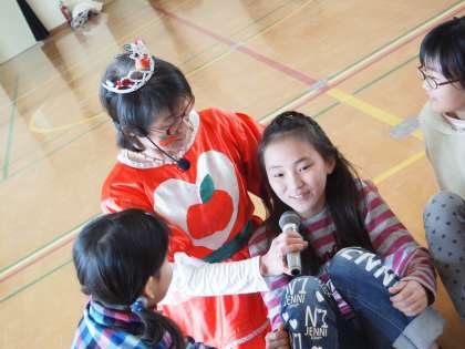 マイクを向けられると照れながらもうれしそう…。