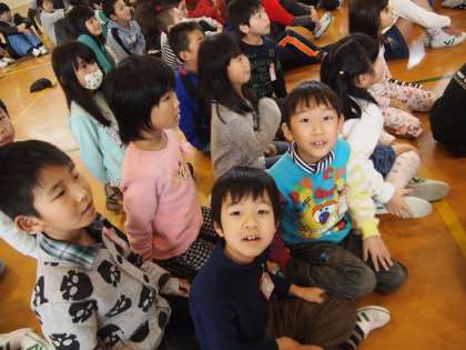 低・中・高学年別に「好きな給食ベスト5」の発表でした。人気のあったのは「三食ゼリー」「ケーキ」等でした。みんな盛り上がってましたね。