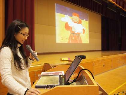ボヤンさんのお話の前に本校の事務職員の市川による『スーホの白い馬』の読み聞かせがあります。何度も練習をして良い感じに仕上がっています。全校の子どもたちもきっと感動してくれることでしょう。