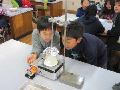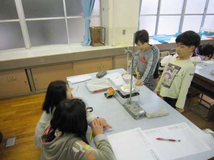 4年生は,「水を温め続けるとどうなるのだろうか」という課題で学習をしました。