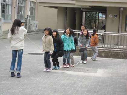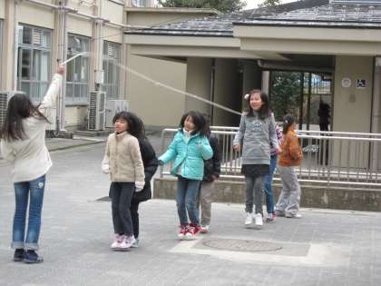 楽しく長縄跳びを楽しむ4年生がいました。