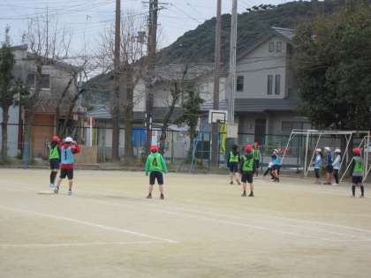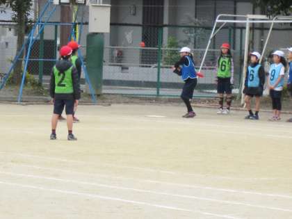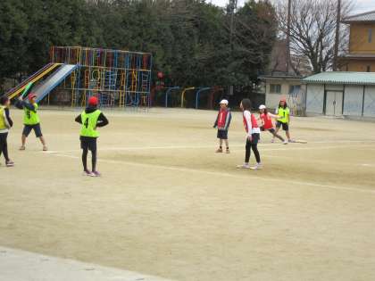 ピッチャーの投げる山なりのボールを,バットで打とうとしていました。