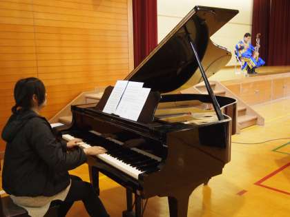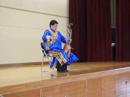 最後は『荒城の月』。馬頭琴の何とも言えない哀調を帯びた音色が素晴らしかったです。大八木先生のピアノと実によくマッチしており,聴きに来られていた保護者の方が「涙が出そうになりました」とおっしゃっていました。