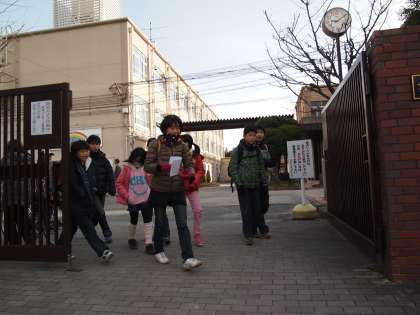 じゃんけんで勝ったグループから校門をうれしそうに出て行きました。今から松尾のバス停に行くようです。気をつけていってらっしゃい。帰校は3字前後の予定です。