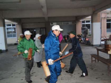 おはようございます。ただ今7時25分,雪のような雨(?)になっています。7時ごろから少年補導・PTA・おやじの会・体振など多くの方々が準備におおわらわです。