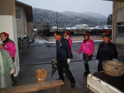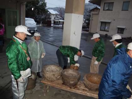 おもちをつく道具,うすやきねを始めいろんな道具のそれぞれが年に1度の出番を待っているように思います。9時半からはじまります。足もとに気をつけてお越しください。