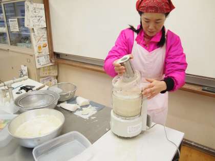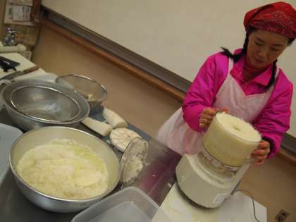 家庭科室でも着々と準備が…。何をしておられるかわかりますか?実はこれ,おもち用の大根をおろしておられるんですよ。そう言えば今朝の朝日新聞土曜版に「あなたの好きなお餅の食べ方ランキング」という記事がありました。「大根おろしで食べる」というのは何位だったかなぁ…。