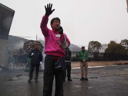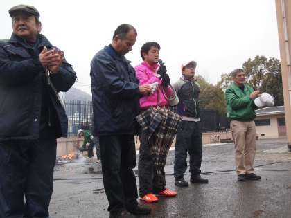 開会式が雨の中始まりました。「いろんな方々に大世話になっていますよ。感謝しましょう。」というメッセージでした。