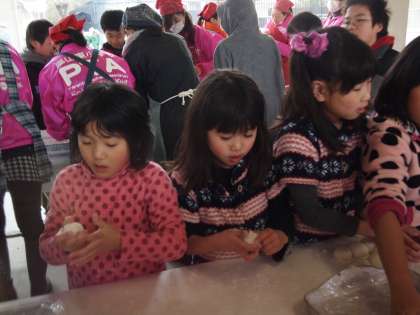 おもちを丸めて,その中に上手にあんこを入れるのはなかなかのテクニックがいりそうですよ。