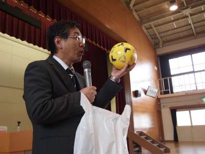 PTAの方々にベルマークでサッカーボールを買っていただきました。この前は「プリンタ=機能付きのストップウォッチ」をいただきました。