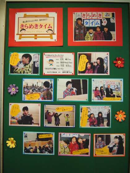 おはようございます。月曜日の「きらめきタイム」(1年生とあおぞら学級)の掲示ができました。それぞれがんばった表情が写真にも表れています。