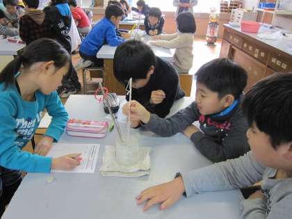 4年生は,理科で「水を冷やし続けるとどうなるか」という課題をもって学習しました。