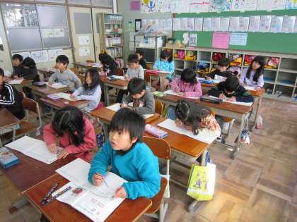 1年2組では,算数の時間にこれまでに学習したことを使って練習問題に取り組んでいました。