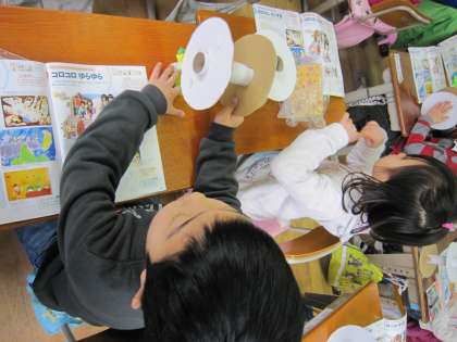 写真のようなコロコロ転がるものを作り,これから飾りをつけていきます。どんな飾りをつけていくのか楽しみです。
