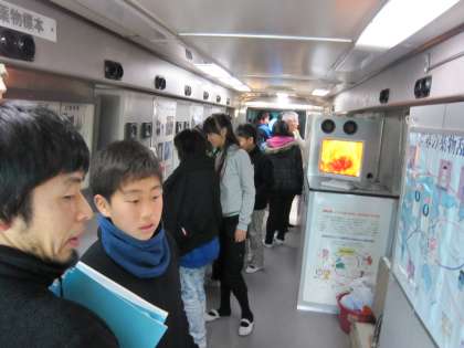 6年生は,お話を聞いた後,キャラバンカーで世界の薬物乱用の例やLSDと幻覚剤などについて,クイズ形式や展示物で学びました。