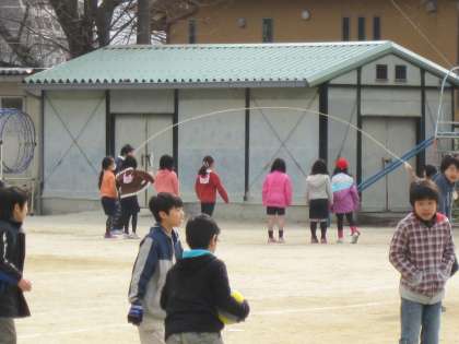 中間休みには,運動場にたくさんの子ども達が出て,思い思いの遊びをしていました。