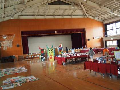 ただ今4時20分,図工展の会場がずいぶん整ってきました。立体作品はほぼ展示が終了しました。このあとみんなで平面作品を壁につけていきます。明日の参観・懇談の前後にお立ち寄りください。