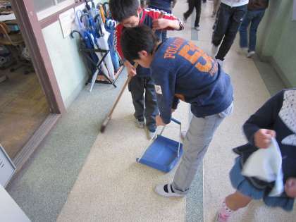 ふき掃除だけでなく,掃き掃除も頑張っています。