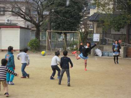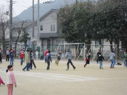 朝,雪の舞う中,登校してきた子ども達は,外で元気に遊び始めました。