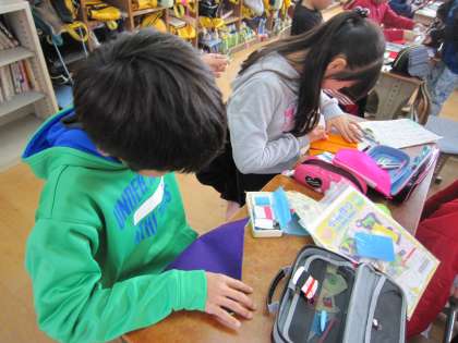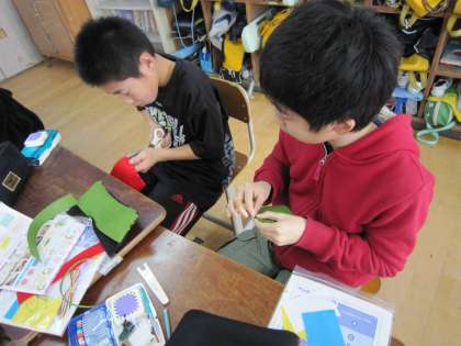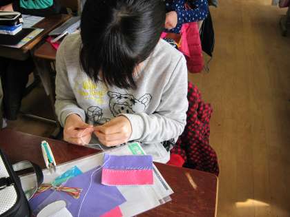 6年生は,家庭科で「小物づくり」に取り組んでいます。フェルトを使って,ティッシュケースや小物入れなどを作っていました。