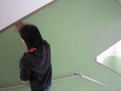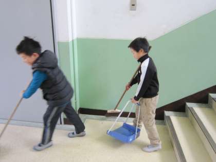 校舎を回っていると,階段をきれいにする子ども達の姿がありました。