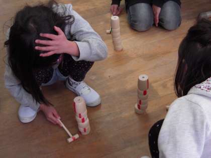 だるまおとしは「やったことがない。」という子が多く,なかなかむずかしかったようです。