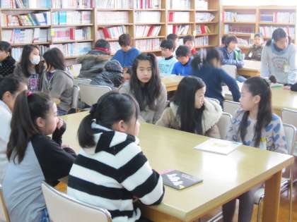 図書室の前を通ると,靴がきれいに並んでいました。何年生かなと中に入ると,5年2組のみんなでした。