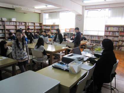 5年2組は明日2年1組の子ども達に朝読みをします。そのために,この時間に絵本などを借りに来ていたのでした。